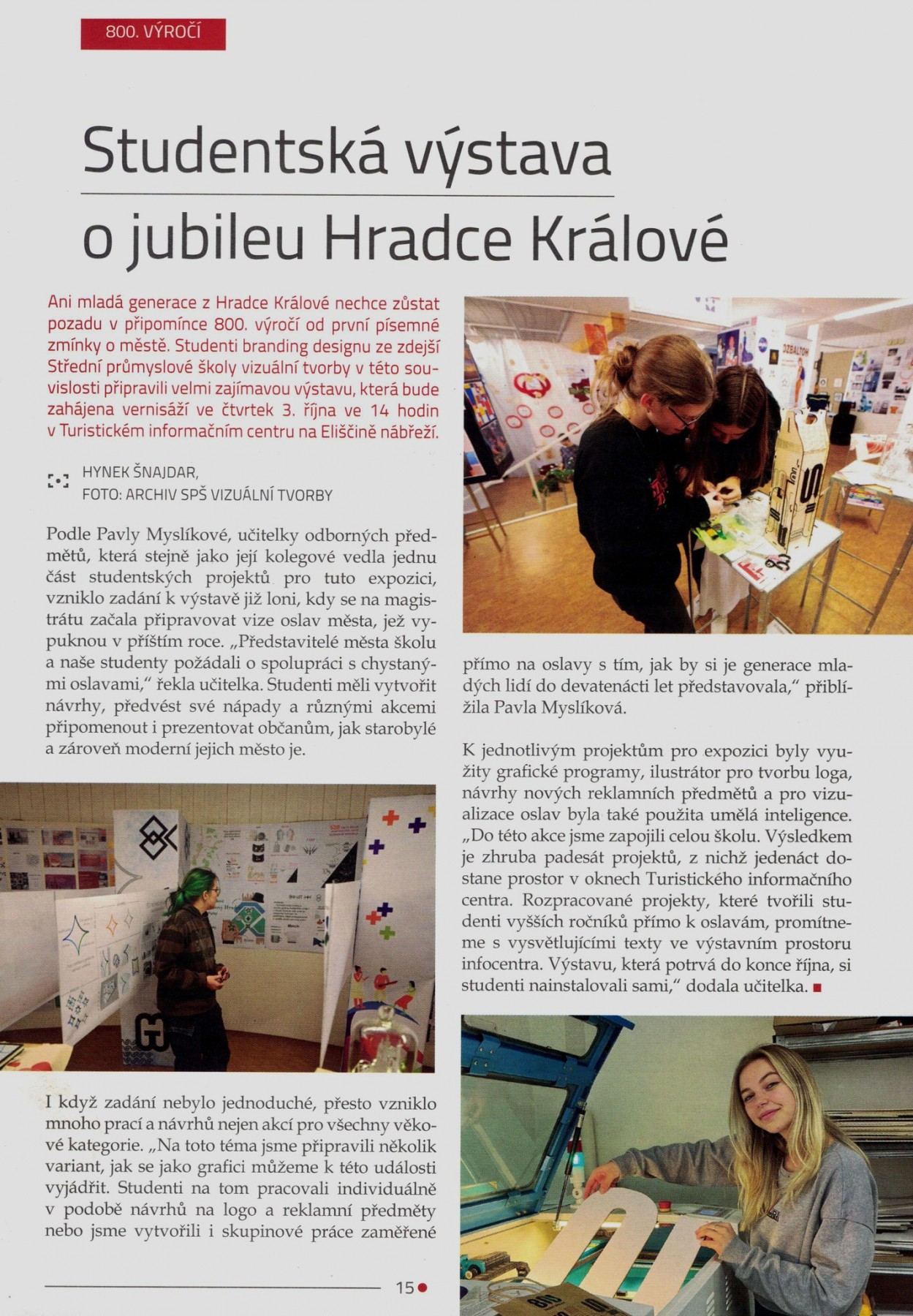 Velmi úspěšnou spoluprací byla také účast na přípravách oslav 800 let města Hradec Králové. Studenti pod vedením pedagogů vytvořili kreativní díla, která byla vystavena v Turistickém informačním centru Hradec Králové.